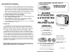 ENSAMBLAJE, MANDOS Y OPERACIÓN ENSAMBLAJE 1) 2) 3) 4) 5) 6) Saque el humidificador de la caja y retire todos los materiales de embalaje, mechas, etc. de la caja. retire la espuma de la botella. Ponga el “gabinete” del humidificador con la mecha evaporadora en el lugar donde será operado a por lo menos 4 pulgadas de la pared. Llene la botella hasta la capacidad de 1 ¾ de galón, póngale la tala y apriétela bien. Use ambas manos para colocar la botella en la base.