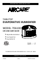 READ AND SAVE THESE INSTRUCTIONS TABLETOP EVAPORATIVE HUMIDIFIER MODEL 7D6100 USE AND CARE GUIDE Adjustable Humidistat Four Speed Fan Easy Bottle Fill Français ….........9 Español …….. ..17 TO ORDER PARTS AND ACCESSORIES CALL 1.800 .547.