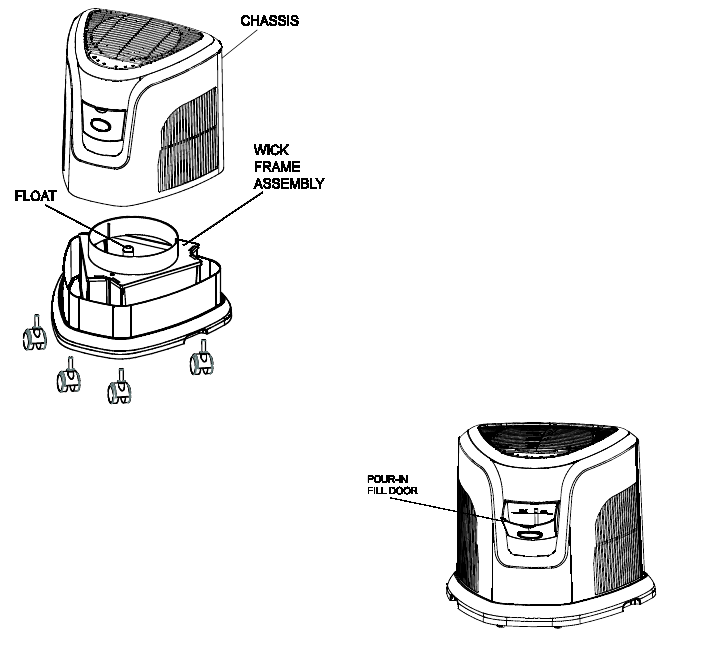 - 3. One set of three (3) HDC311 wick filters (provided) fit into the wick frame.