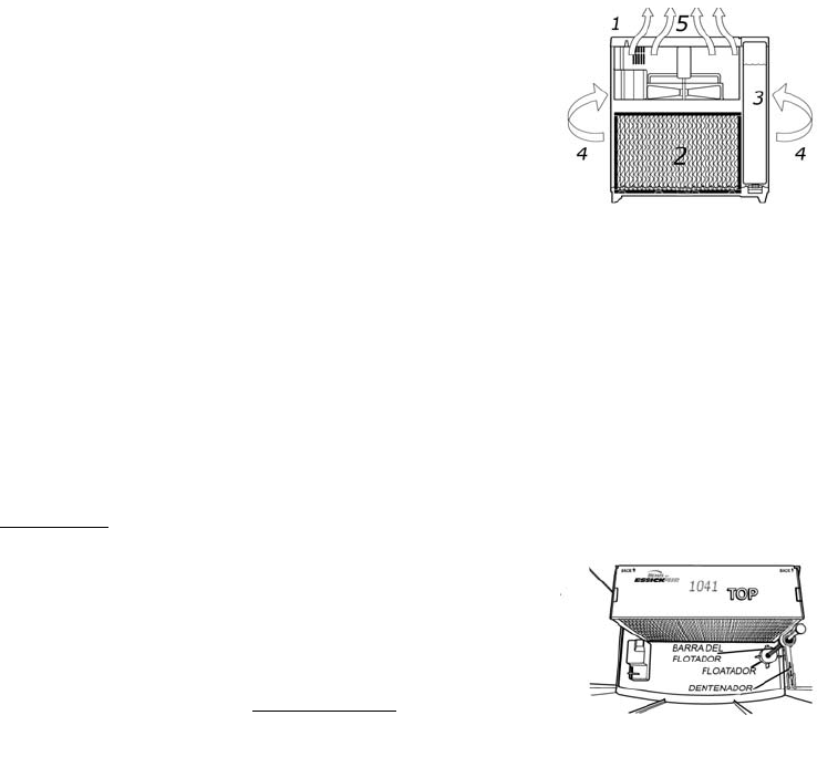 el filtro/mecha evaporador. Después se expulsa al ambiente por medio del ventilador.