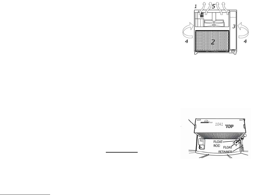 5) When placing the wick back into the humidifier, the rod and float assembly must be in place. Insert the top of the float rod through