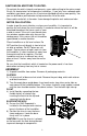 TROUBLESHOOTING GUIDE Trouble Probable Cause Remedy • No power to unit. • Ensure polarized plug is fully inserted in wall outlet. • Unit has run out of water – fan will not operate without water is present. • Refill reservoir. • Refill switch operation/improper positioning of float assy. • Ensure float assembly is correctly positioned as described in • Water Fill, page 5. Light remains on in chassis after unit has been turned off. • LED light stays on in cabinet whenever power is supplied.