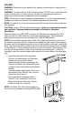 Troubleshooting Trouble Probable Cause Remedy Digital display not illuminated. • No Power. • Power button has not been depressed. • Check 120 volt power source. • Press power button once to turn on. Fan not operating (digital display is illuminated). • Raise SET humidity level if desired. • Increase fan speed. • Fill humidifier with water. Fan running continuously. • ROOM humidity level is not 3% or more below SET humidity level. • Reservoir is empty. • Float is obstructed.