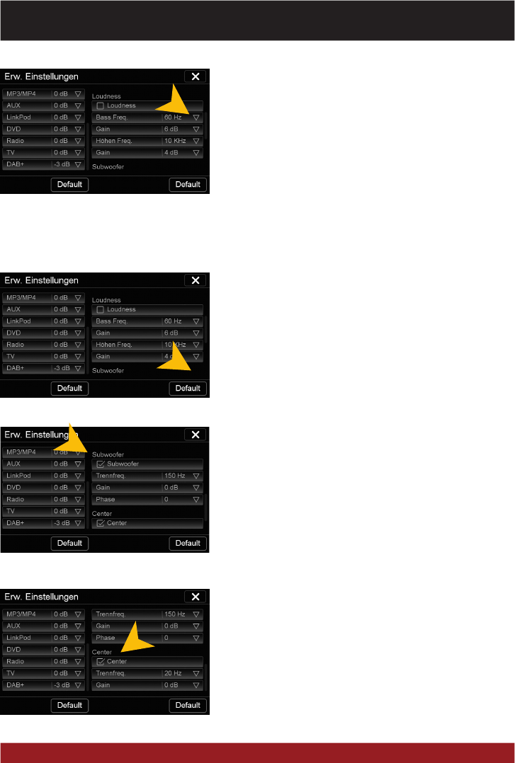 HINWEIS: Tippen Sie auf „Default“ um die jeweilige Werksein-
