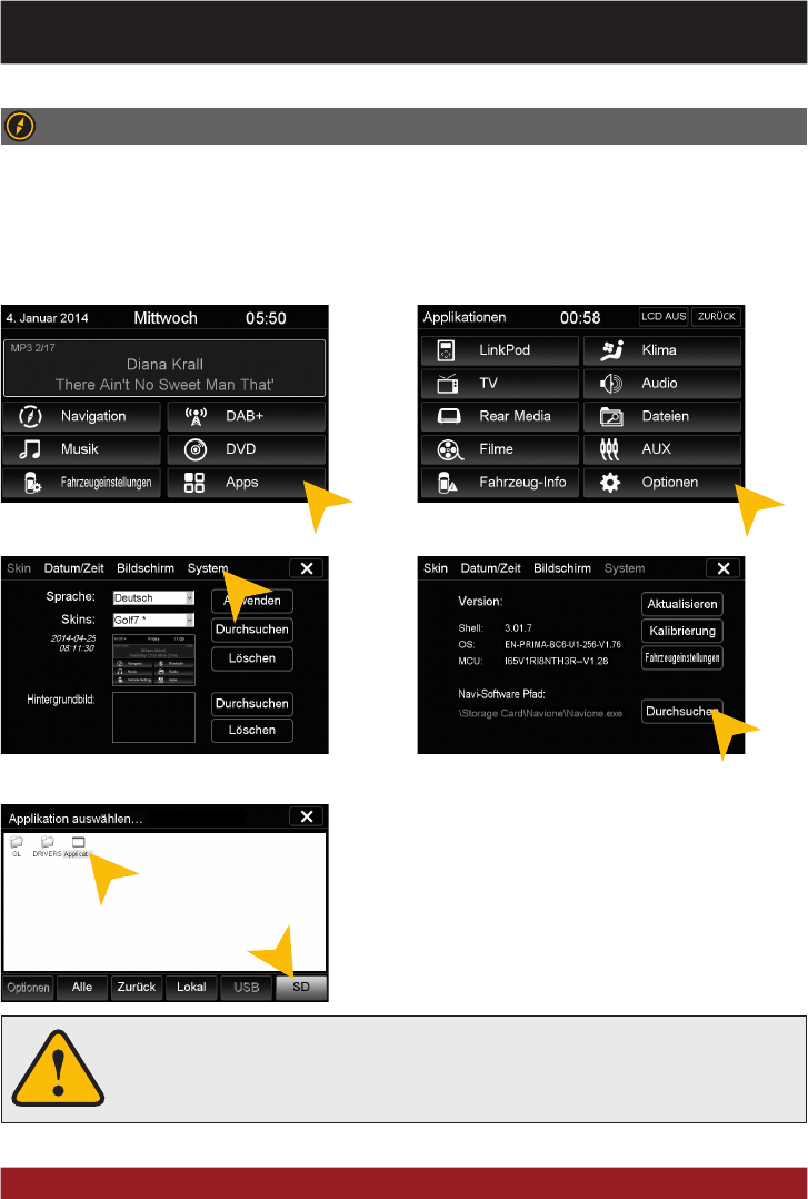 benutzen. Verknüpfen Sie die Navigationssoftware (auf MicroSD-Karte) mit dem Gerät wie folgt: