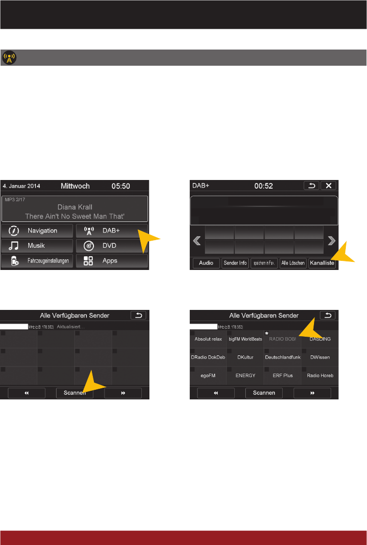In die DAB+ Radio-Anwendung gelangen Sie durch das Antippen des Bedienfelds „DAB+“ im Haupt-