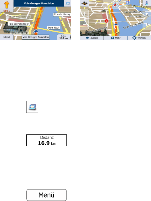 Route werden das nächste Fahrmanöver und die nächste Straße auf Ihrer Route