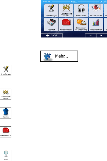 Im Menü „Mehr“ finden Sie verschiedene Optionen und zusätzliche Anwendungen. Tippen