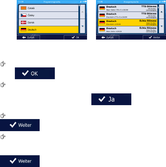 ein kurzes Audiobeispiel der Stimme zu hören. Bestätigen Sie Ihre Auswahl mit