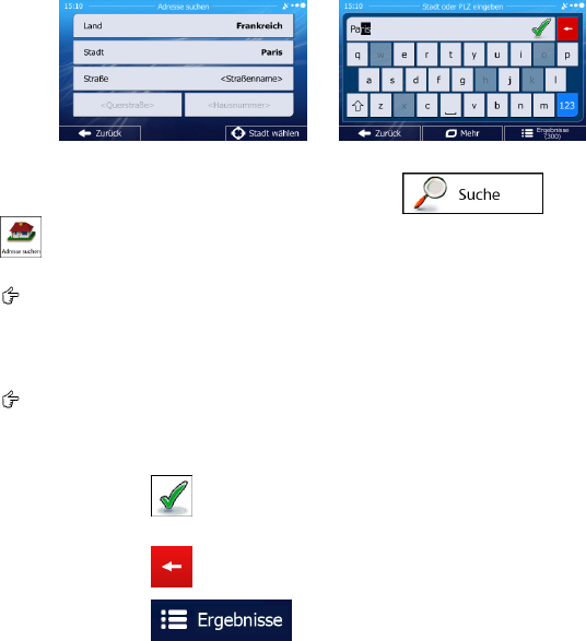 /Ortsnamen und geben Sie einen Teil des Namens über die Tastatur ein. Während der