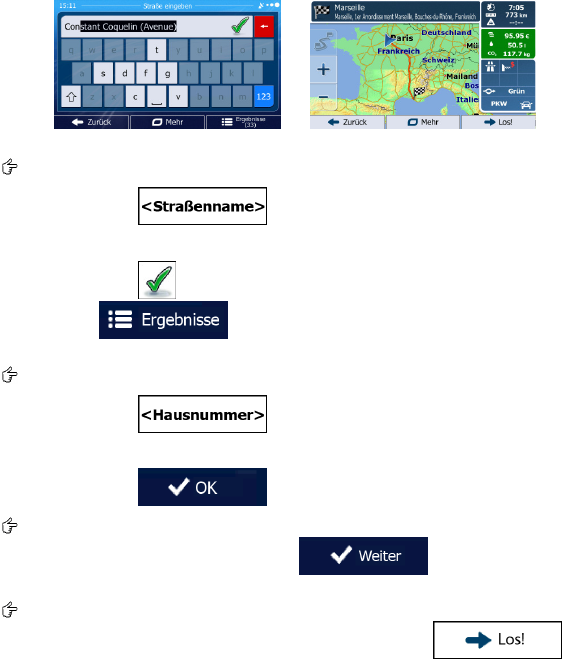 , um die im Eingabefeld vorgeschlagene Straße auszuwählen,