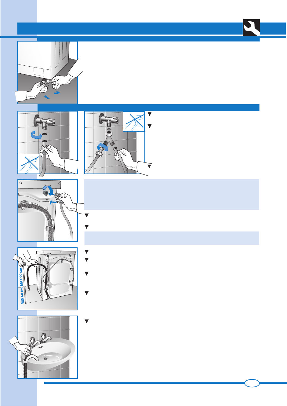 Wasserzulaufschlauch an die Waschmaschine anfl anschen (Abb. 9).