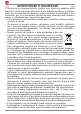 • Non permettere che l’apparecchio sia usato da bambini o da persone non responsabili. • Durante l’utilizzo posizionare l’apparecchio su di un piano orizzontale, stabile ed in grado di sopportare il peso della macchina. • Prima di effettuare qualsiasi operazione di pulizia o di manutenzione, disinserire l’apparecchio dalla rete di alimentazione elettrica staccando la spina. • Non utilizzare getti d’acqua o detergenti.