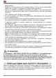 IT AVVERTENZE E SICUREZZE IT Il costruttore ha ragionevolmente previsto ogni sicurezza possibile onde garantire l’incolumità degli utilizzatori, ma le svariate condizioni di installazione e/o movimentazione possono creare situazioni incontrollabili o non prevedibili; per cui è necessario valutare sempre eventuali rischi residui e tenere in considerazione i seguenti suggerimenti: • Porre attenzione nella movimentazione della macchina, perché sussistono rischi di caduta.