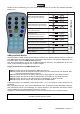 OPERATION The LED effects with DMX connection have two operating modes. It can be operated via IR remote control or it can be run in DMX-controlled mode via a DMX controller. If the device is controlled via a DMX controller the remote control is deactivated. After you connected the LED effect to the mains, the device starts running. Operation via optional remote control The LED-effects are controlled via the optional 51914130 EUROLITE IR remote for LED effects. This controller is always needed, e.g.