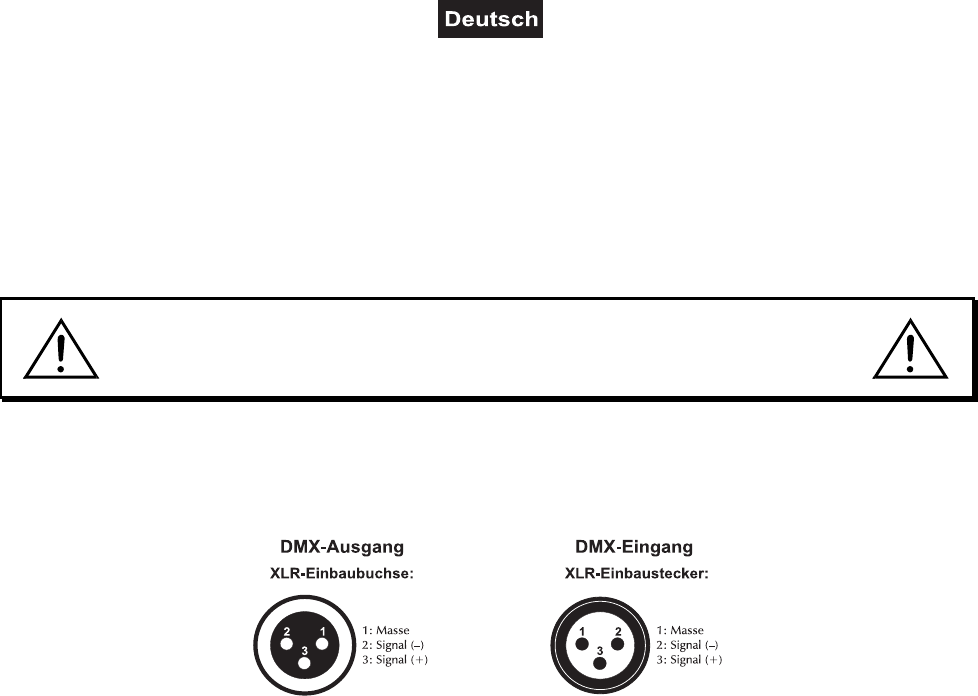 DMX-Kabel erfolgen. Die Steckverbindung geht über 3-polige XLR-Stecker und -Kupplungen.