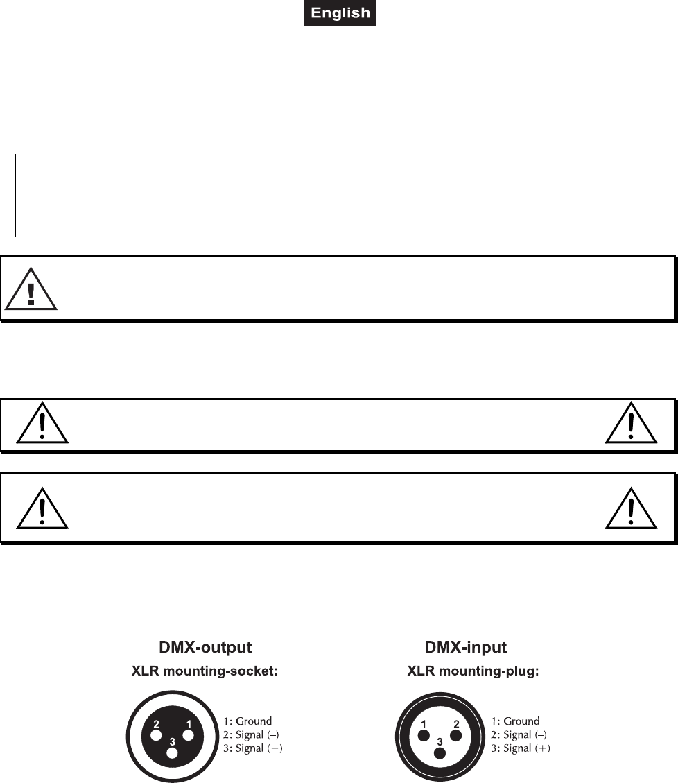 Only use a DMX-cable and 3-pin XLR-plugs and connectors in order to connect the controller with the fixture