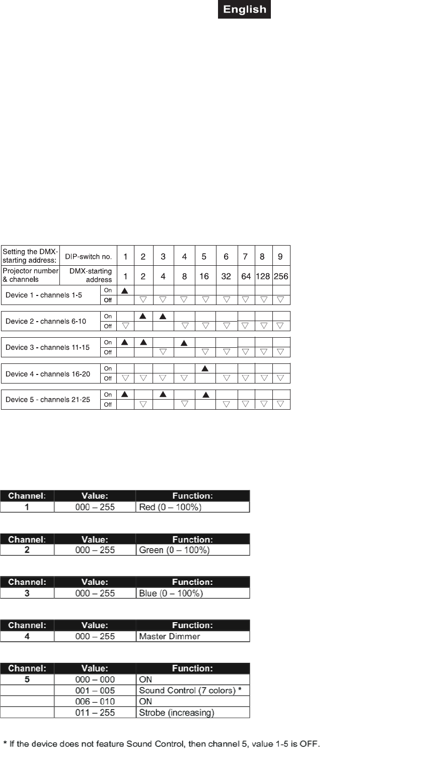 The starting address is defined as the first channel from which the device will respond to the controller.