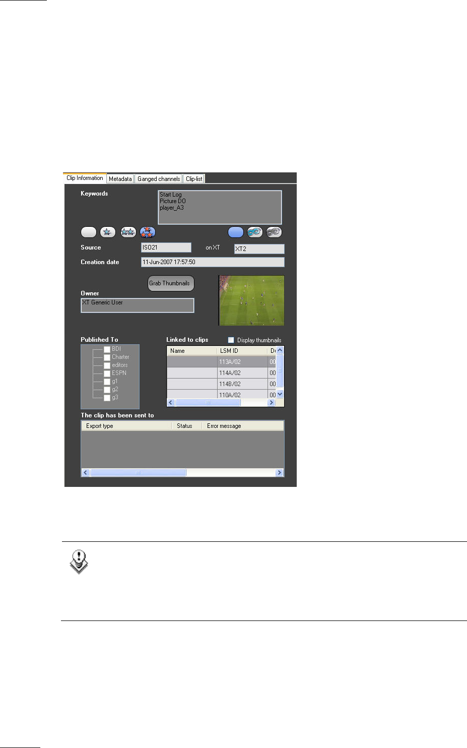 The screenshot below shows the Clip Information tab:
