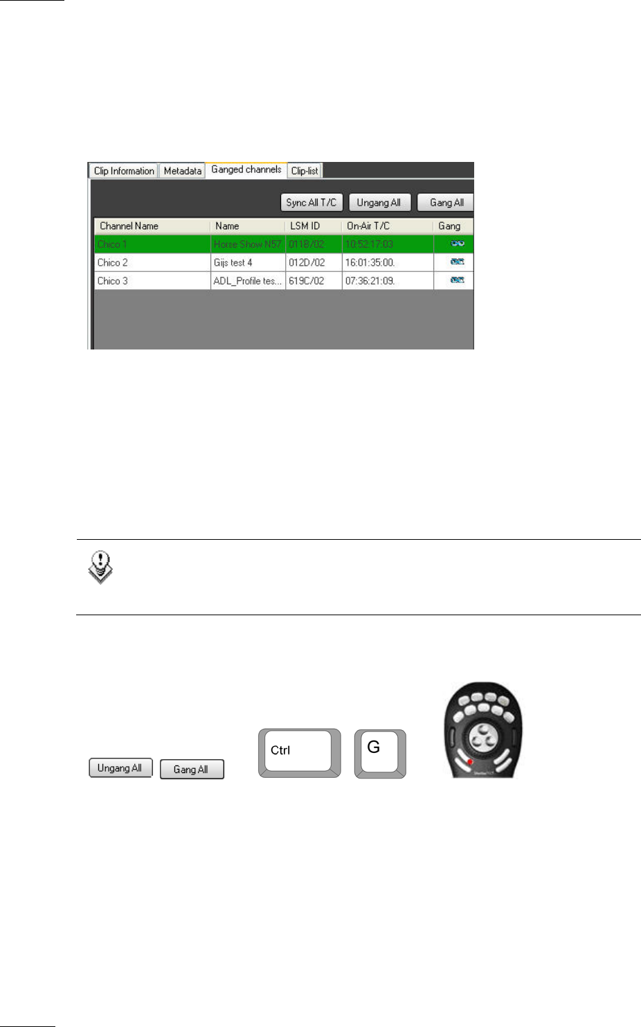 Once the Gang function is enabled in the Channel Explorer, the Gang All and