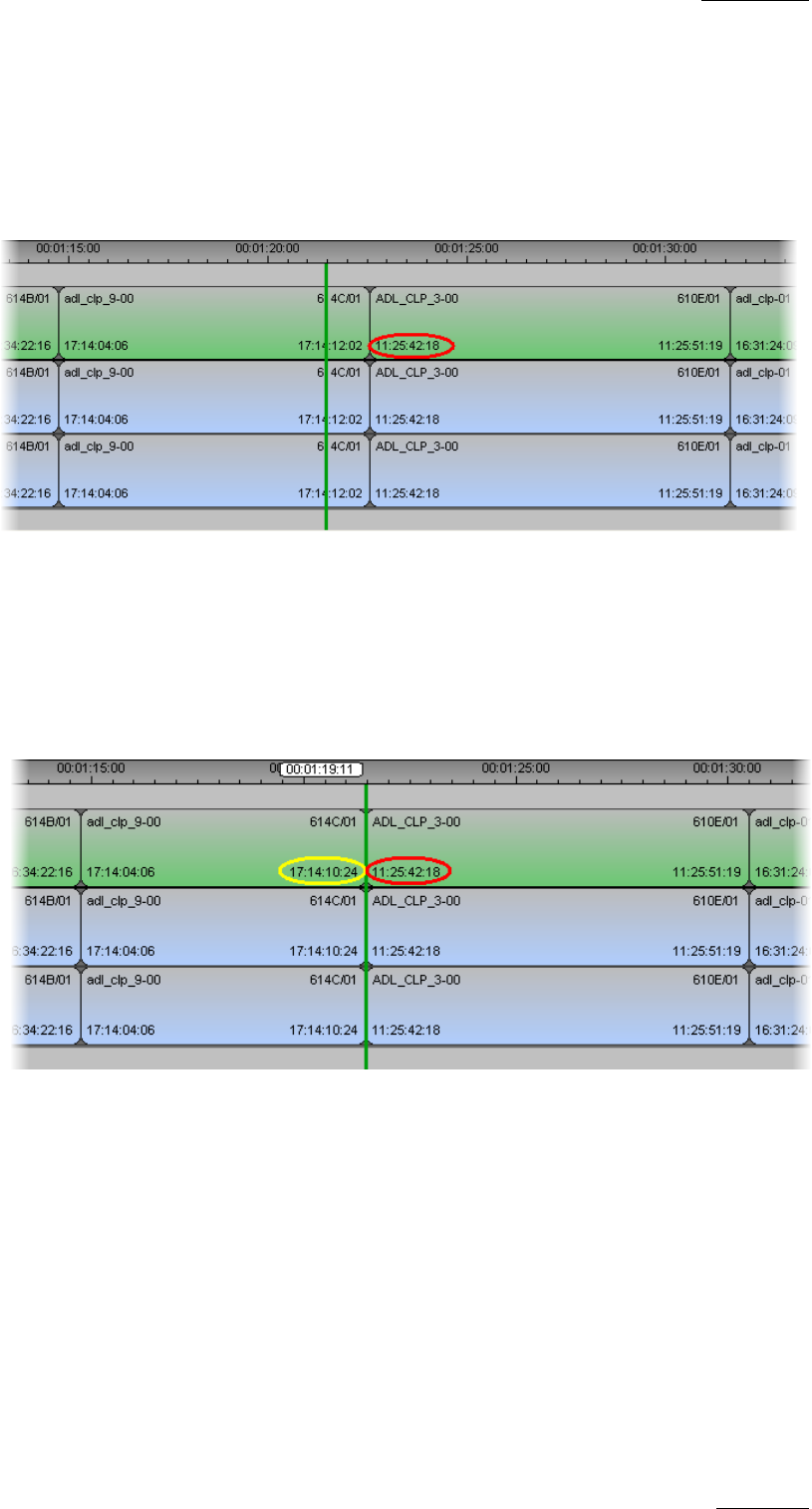 The IN point of the timeline element ‘ADL_CLP_3-00’ has been shifted to the left