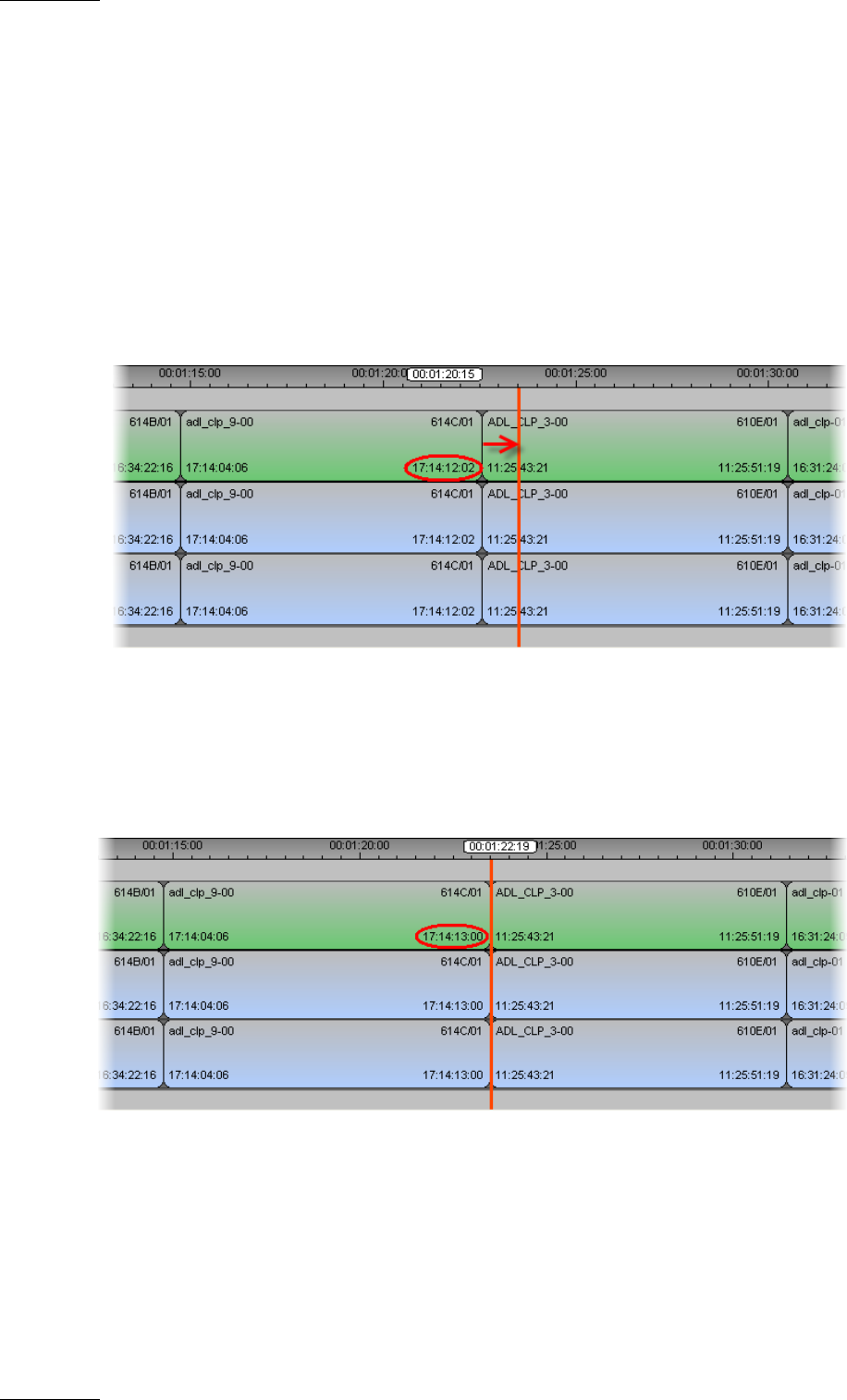 The OUT point of the timeline element ‘adl_clp_9-00’ has been shifted to the right