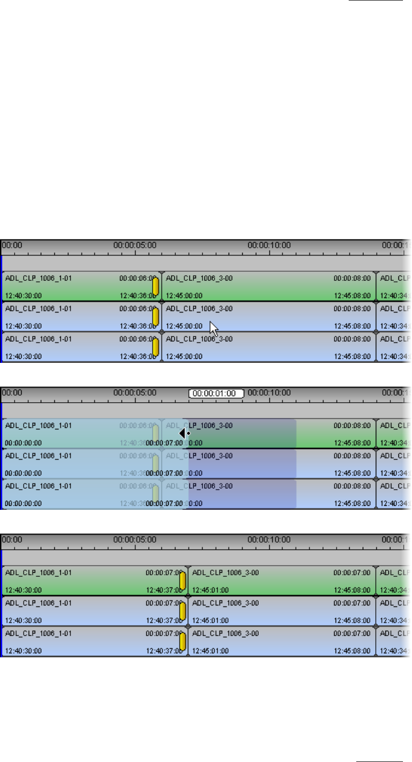 extended. The following element is trimmed by the same duration at its IN point.