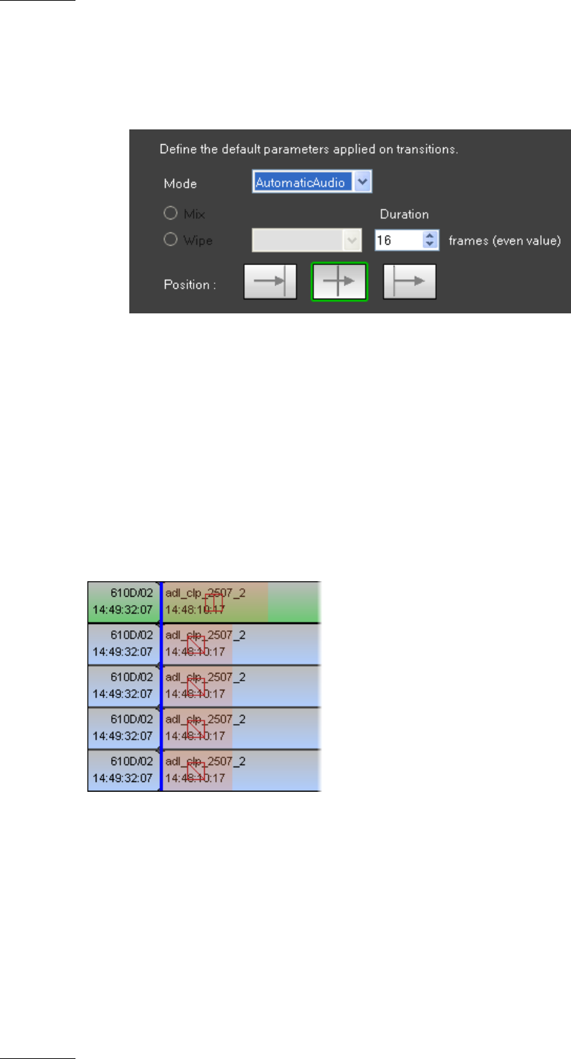 transition effects will be defined on the video and/or audio tracks of the new clip