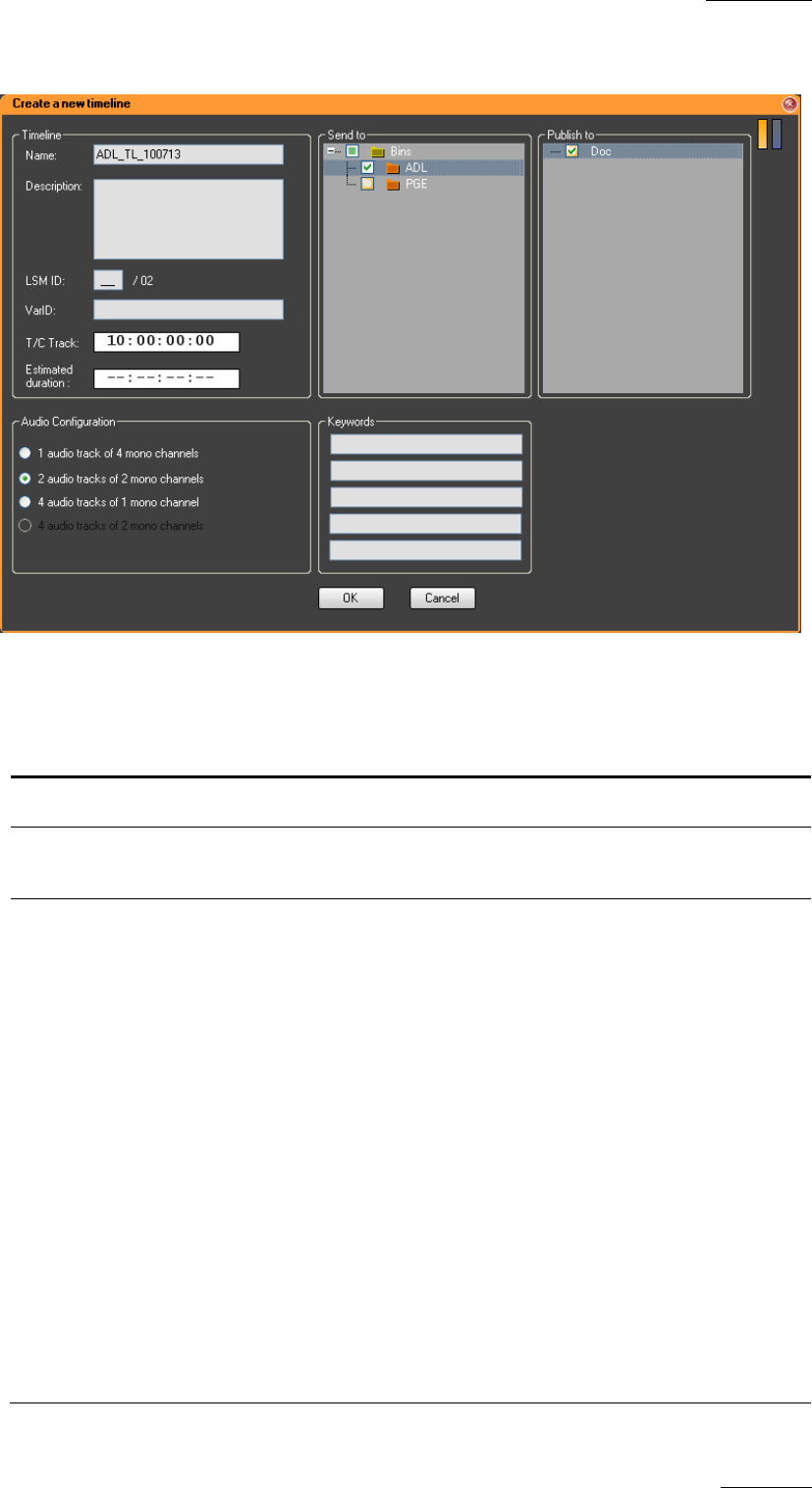 FIELDS IN THE CREATE TIMELINE WINDOW
