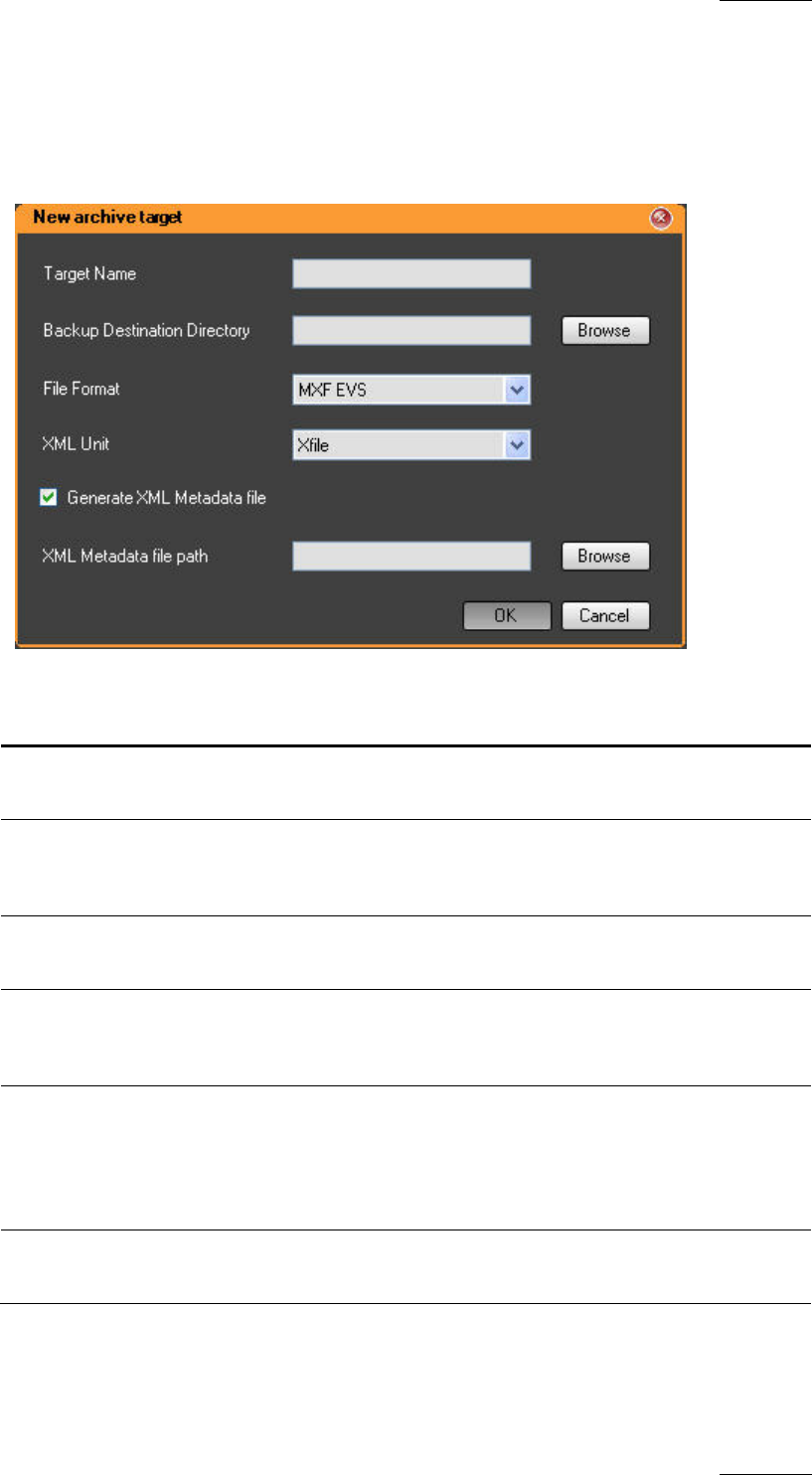 archive target. The fields displayed on the New Archive Target Window are