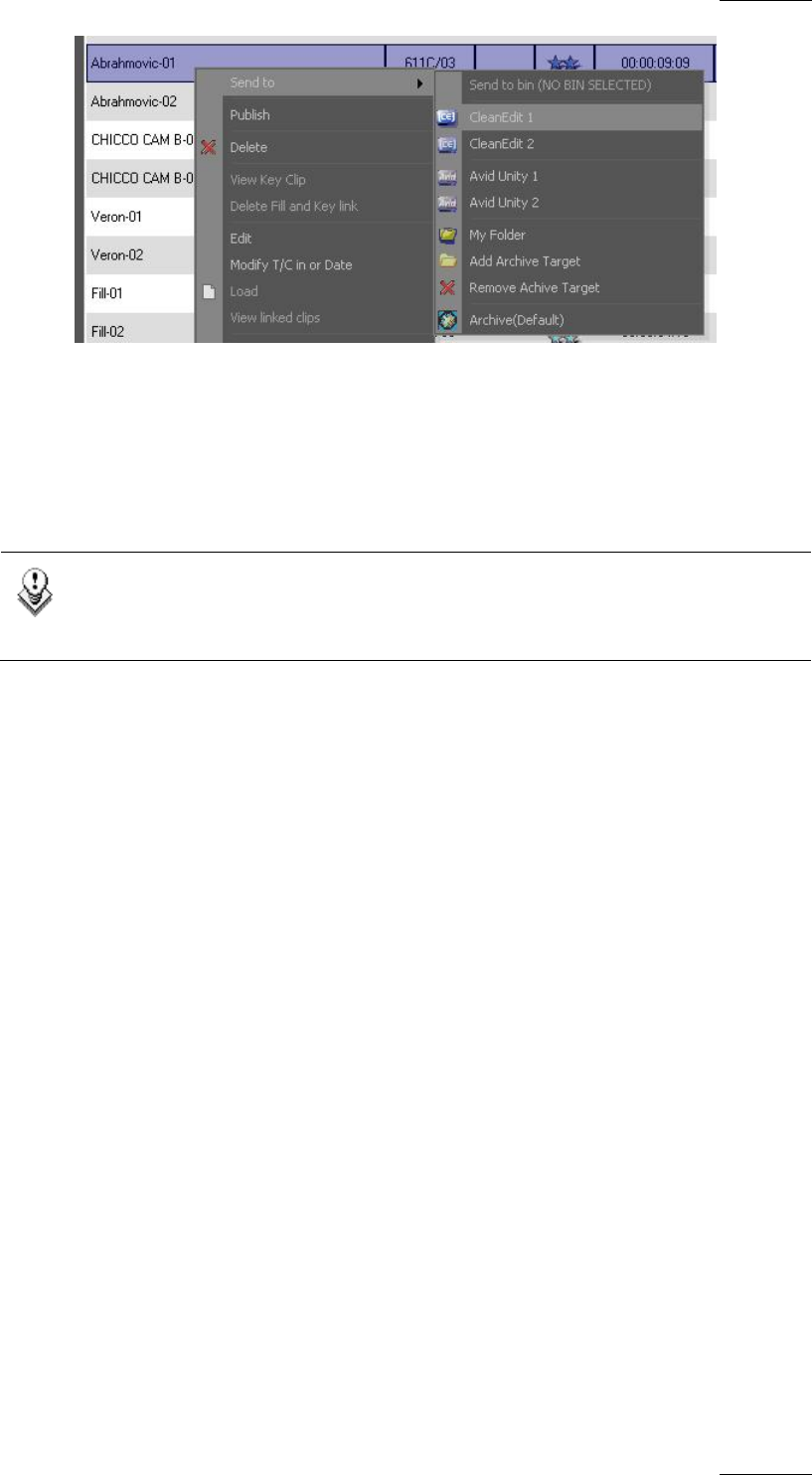 2. Select Send To from the clip contextual menu and select a predefined Avid