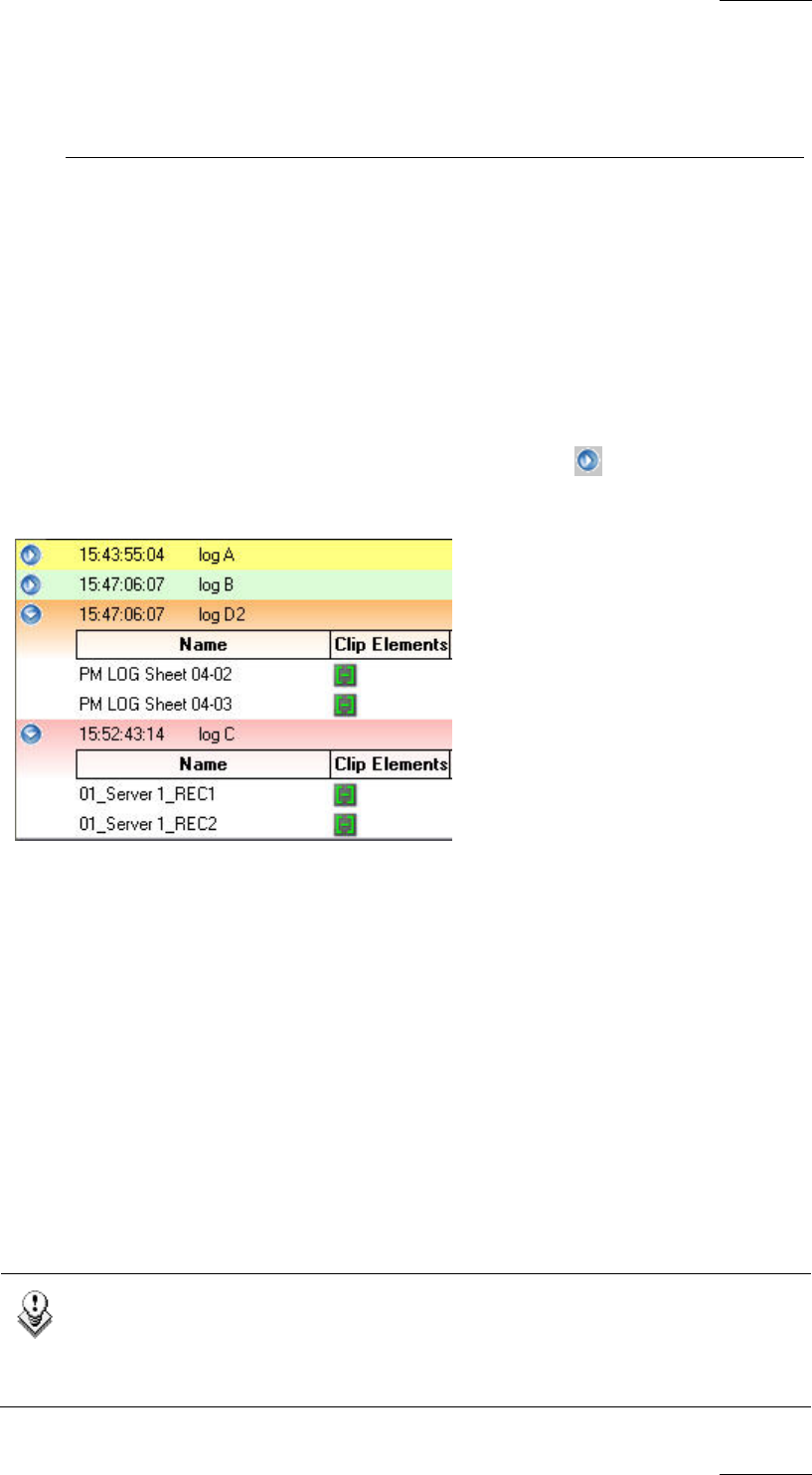each line in the grid to display log entries, Protect Media clips and associated