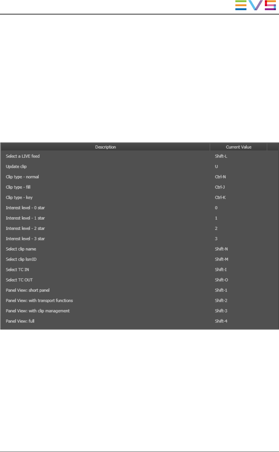 shortcuts, the default values are shown. These can be modified and saved by the system