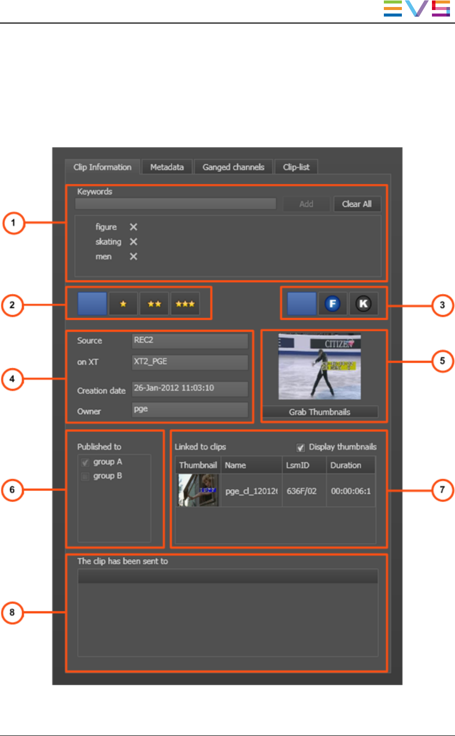 The Clip Information tab contains the areas highlighted on the screenshot below: