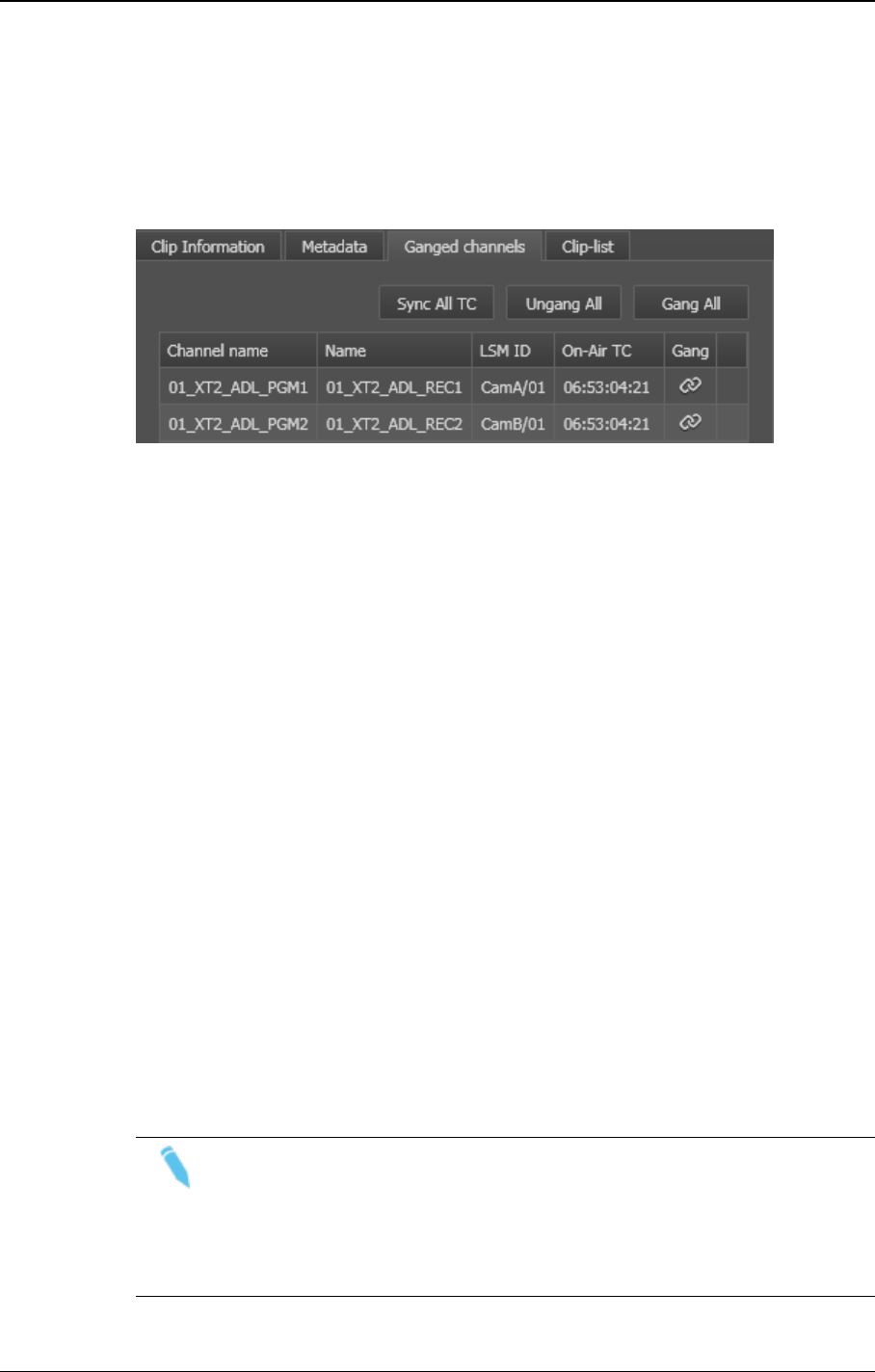 The Ganged Channels tab lists all player channels that have been ganged with the player