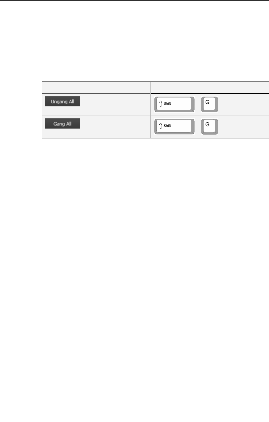 The following table shows the button, shortcut or ShuttlePROkey which can be used for