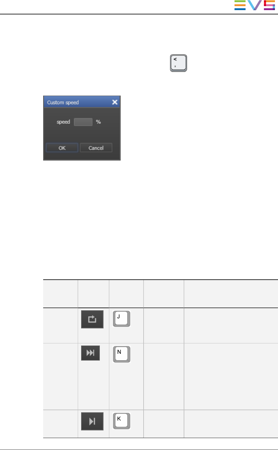 A custom speed can be defined by means of the shortcut or the Fast Rewind / Fast