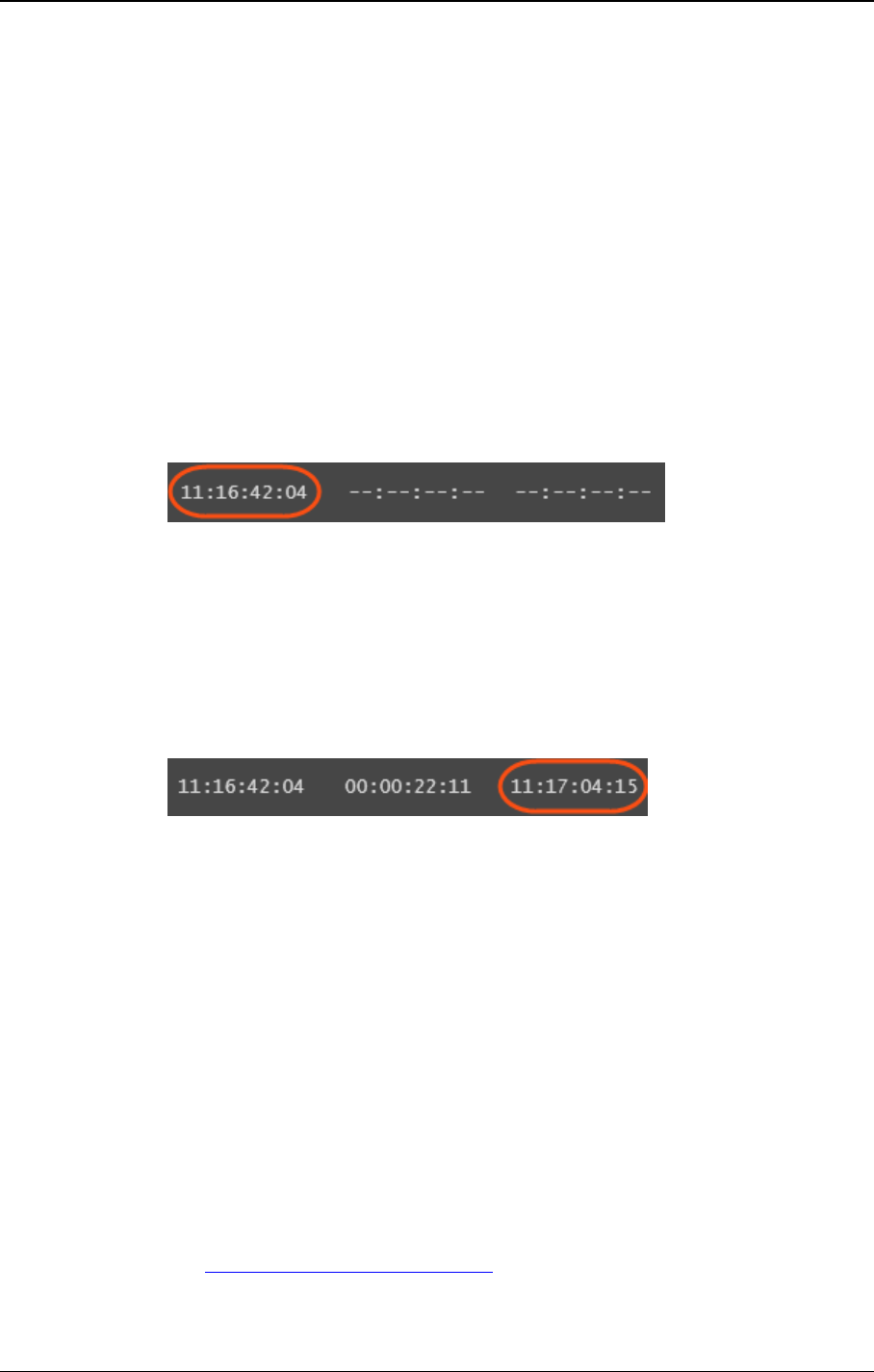 ◦ Use the clip creation function to set an IN point at the required timecode.
