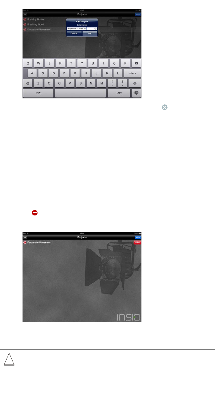 Use the onscreen keyboard to edit the project name. Tap in the text field to