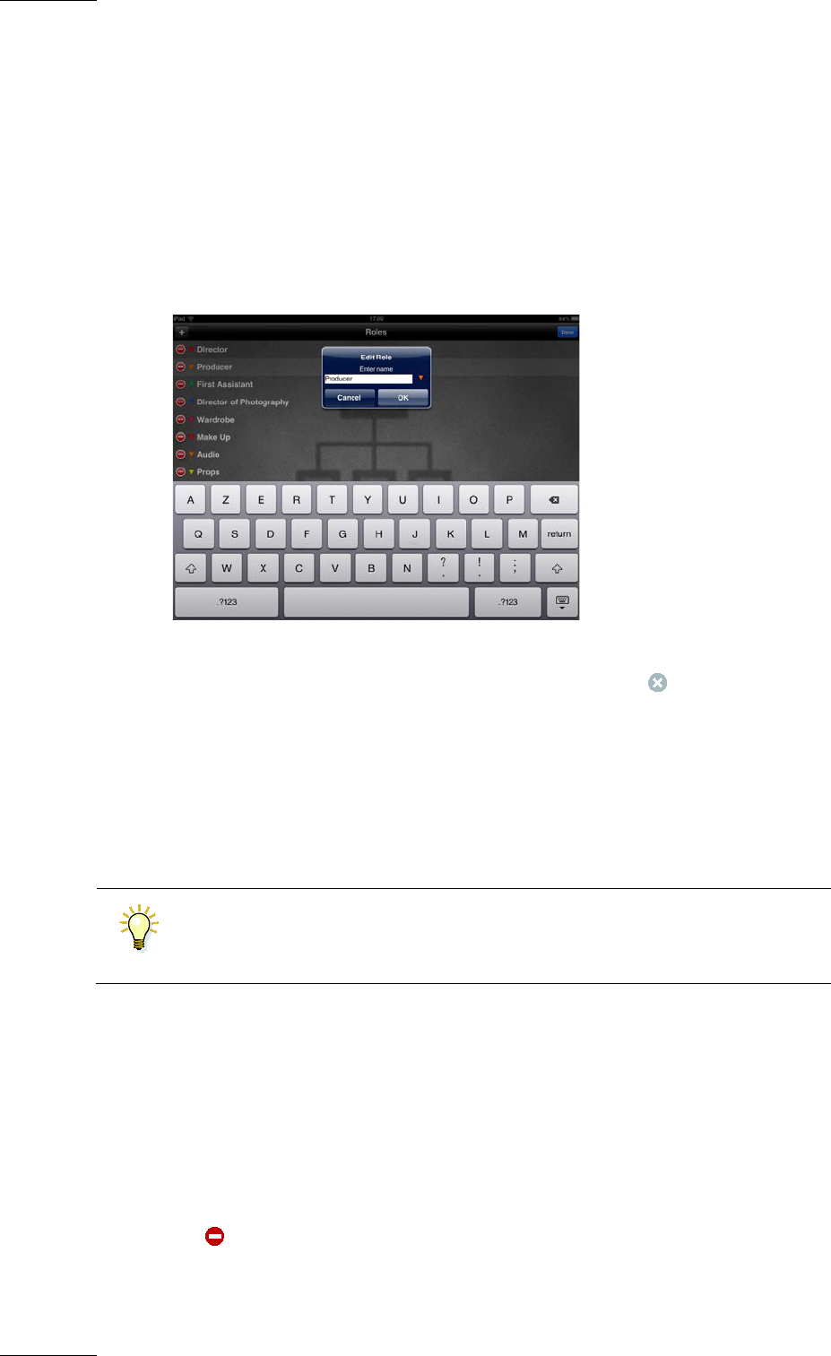 • Use the onscreen keyboard to edit the role name. Tap in the text field to