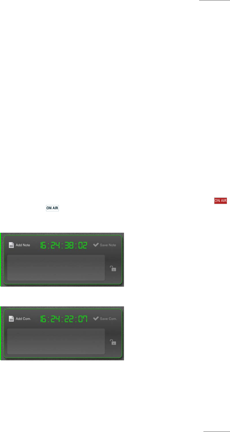 In On Air Mode, the Note Creation pane displays a button to add (Add Note) and save