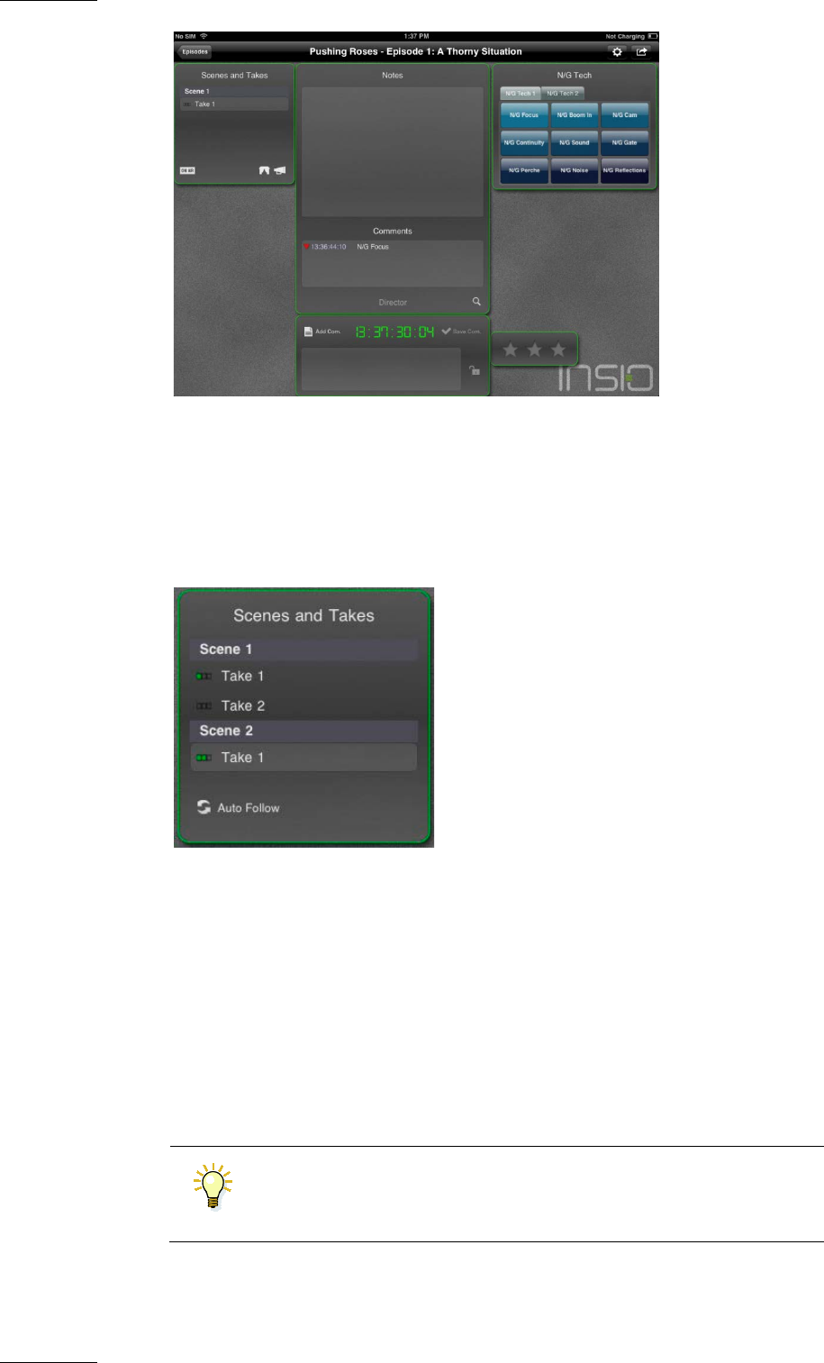up red and only the scene and take that are being recorded by INSIO are listed in