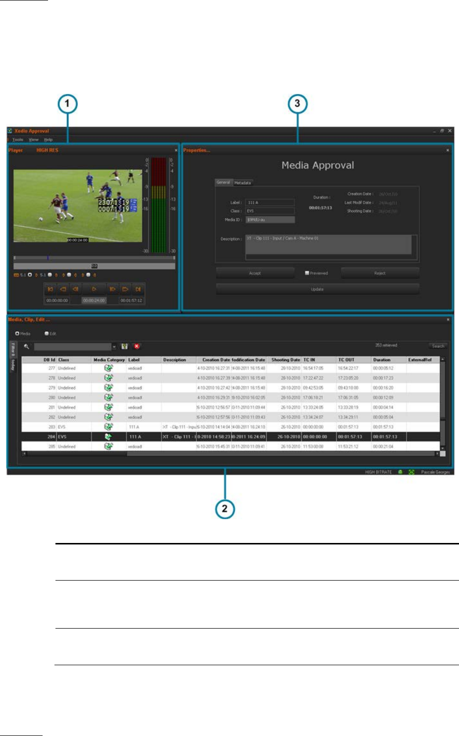 The Xedio Approval graphical interface consists of three main areas, besides the
