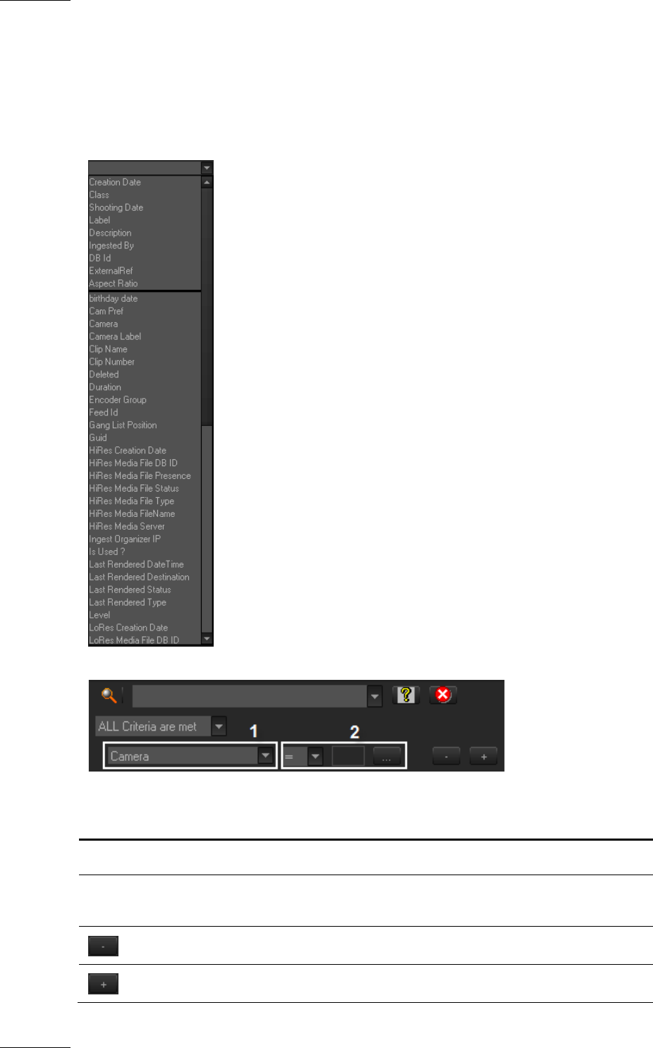 2 Various fields used to enter the filter criteria. Refer to