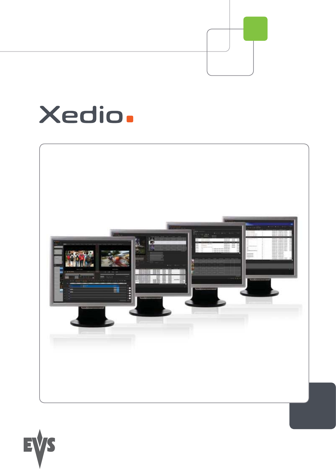 Xedio Suite Version 4.1 - User’s Manual – Ingest Organizer EVS Broadcast Equipment – December 2011 Issue 4.1.A 1. Introduction The Xedi o Inge st ap plic a tion al lows a u ser to c on trol en coder chan nels t o digit ize any inc oming vide o int o high re solu tion , low r eso lutio n or bo th sim ulta neo usly (a panel of di ffer ent cod ec s is availab le).
