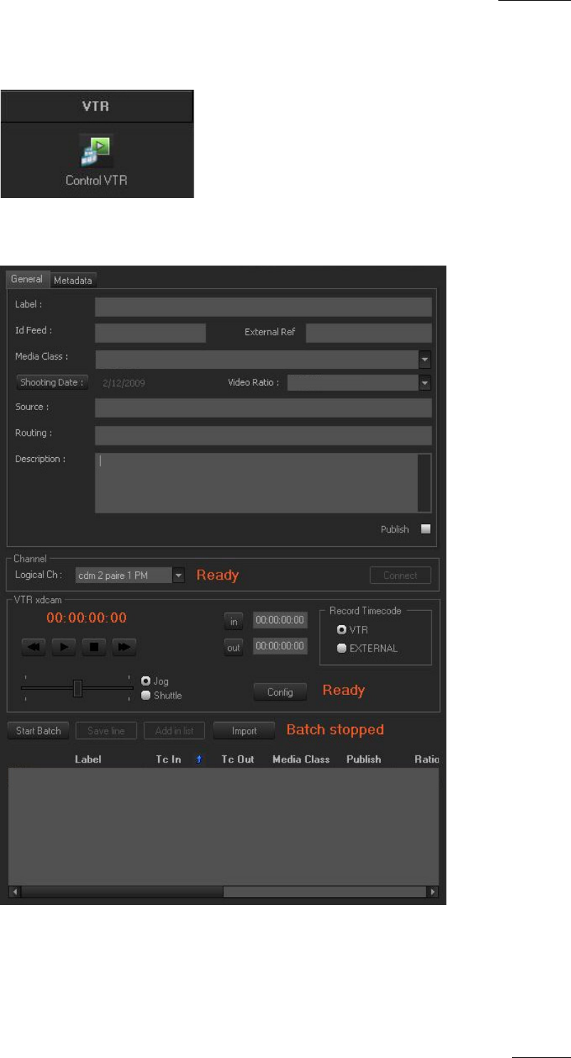 recorded file, to control the VTR and mark areas of the tape to be ingested.