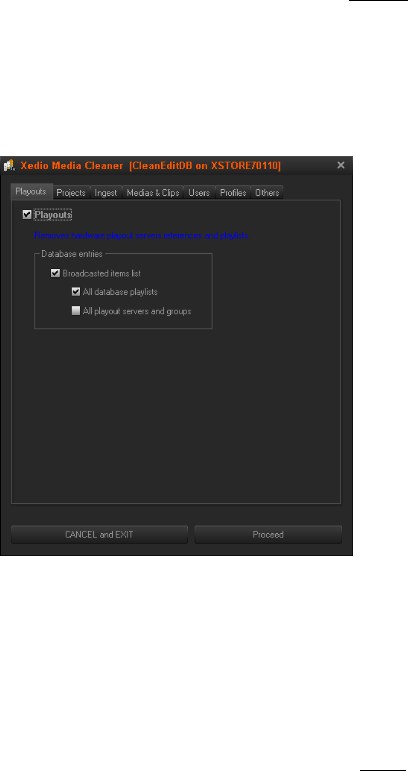 The Playouts tab enables you to clear objects related to playout.