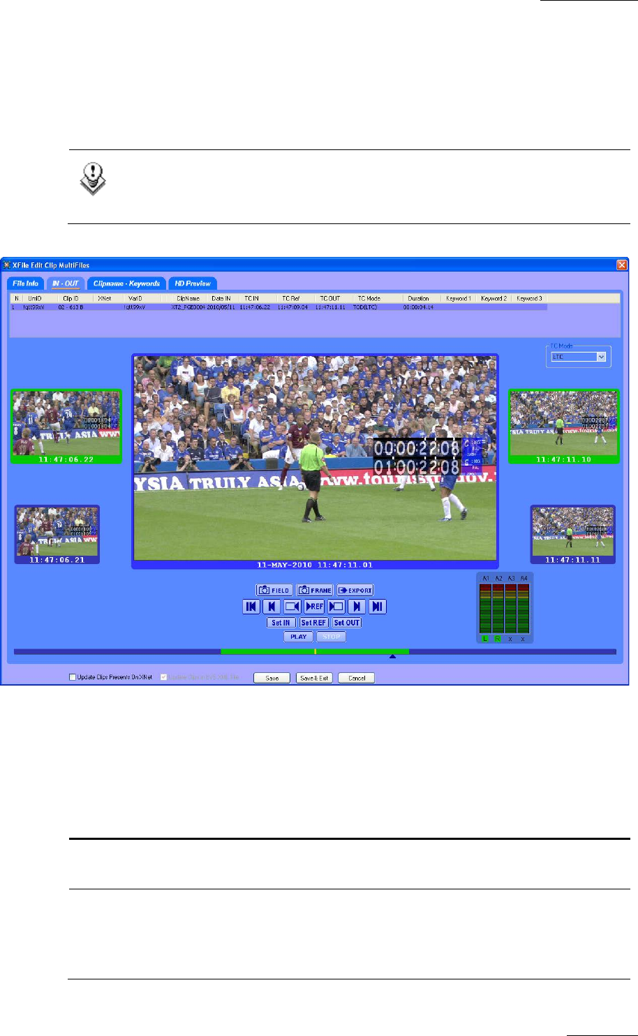 In the IN-OUT tab, the user can, among others, modify the IN and OUT points, define a