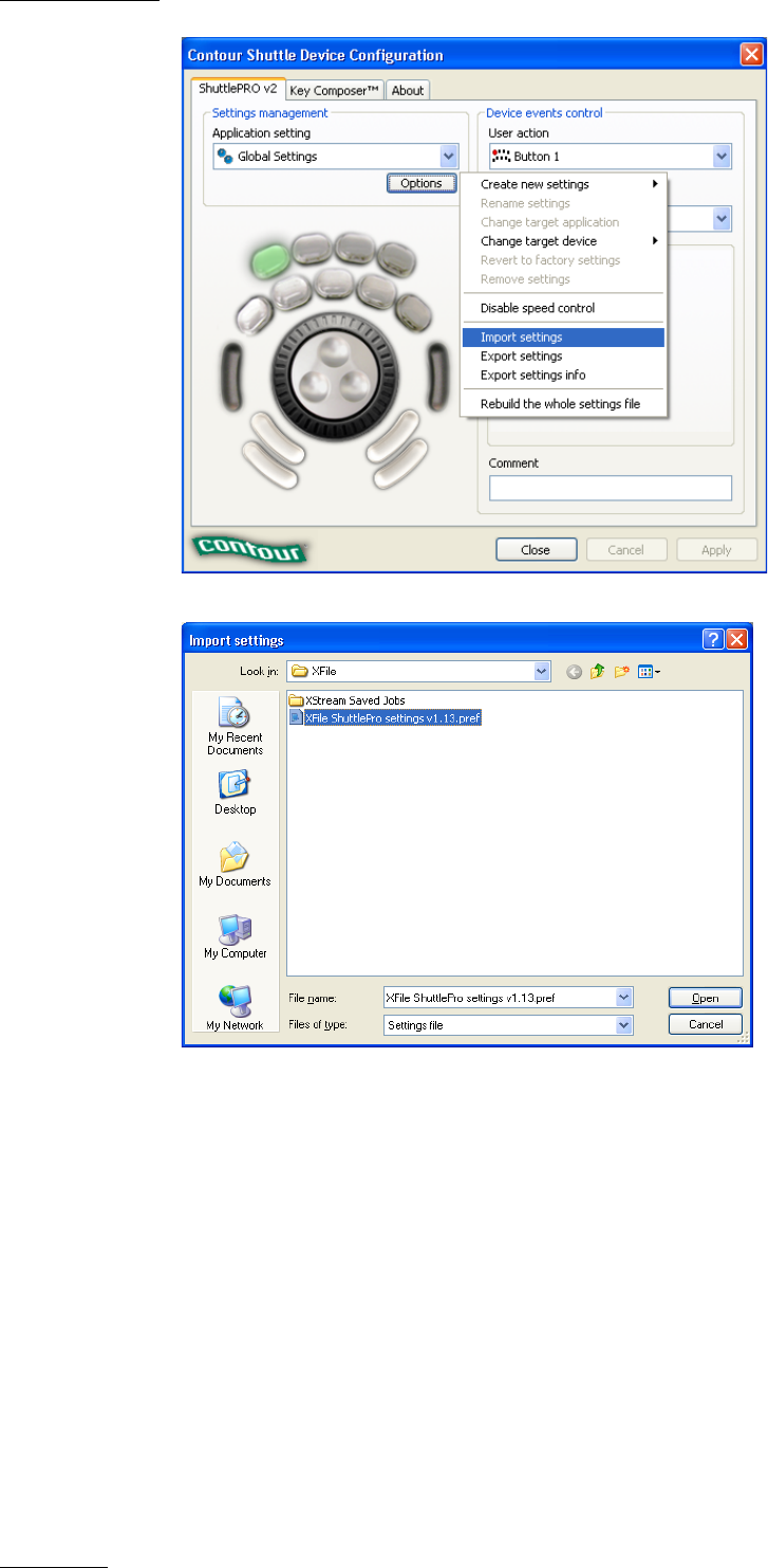 referring to the file version) that contains the ShuttlePRO settings to be loaded and