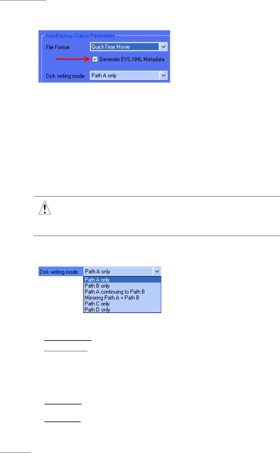 When the AutoBackup Output Parameters > Generate EVS XML Metadata check-box